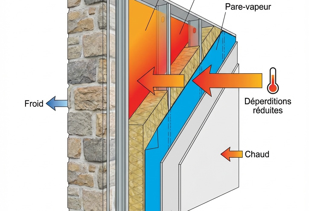 L'isolation thermique crée une barrière efficace contre les déperditions de chaleur. Elle réduit les besoins en chauffage, améliore le confort et supprime les ponts thermiques responsables de 30% des pertes énergétiques.
